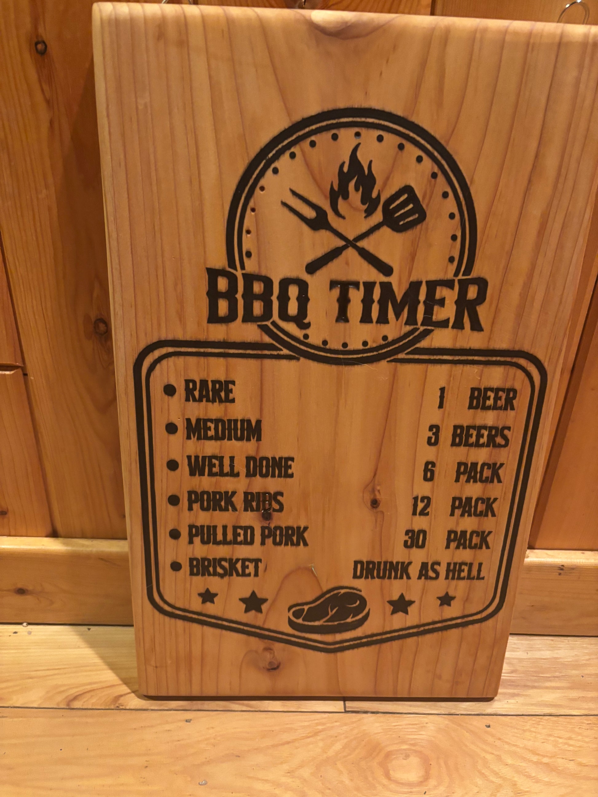 Turn every cookout into a conversation starter with this handcrafted BBQ Timer wooden sign, C&C machine engraved for crisp, permanent detail. Because let’s be honest — great BBQ isn’t timed in minutes, it’s timed in beers 🍺