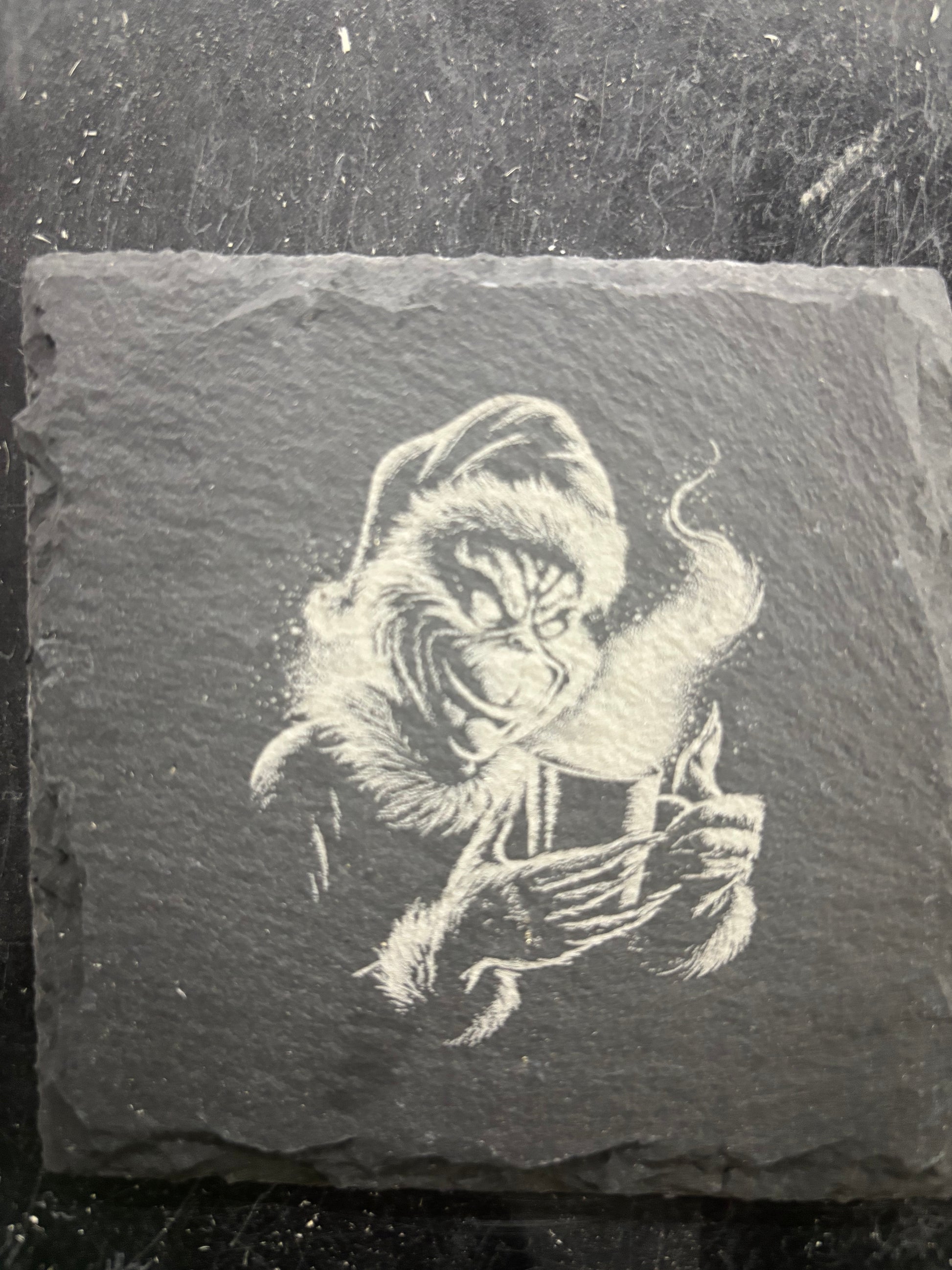 Grinch Slate Coaster – Laser Engraved Holiday Stone Drink Coaster